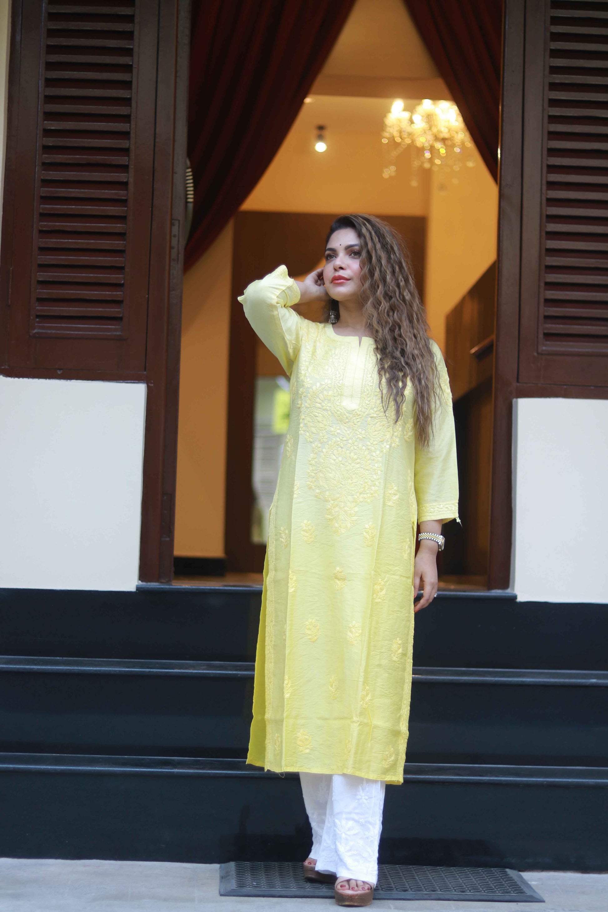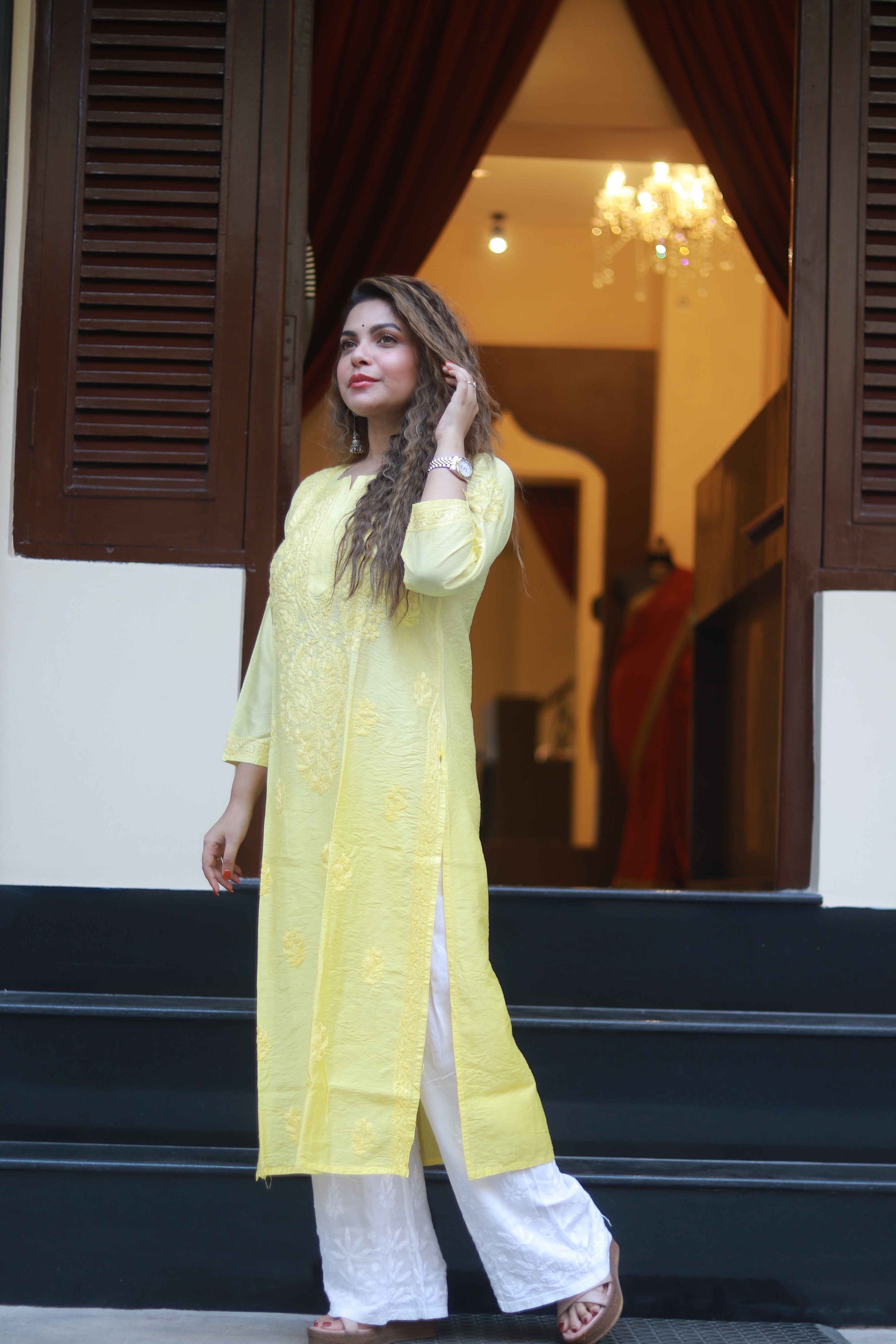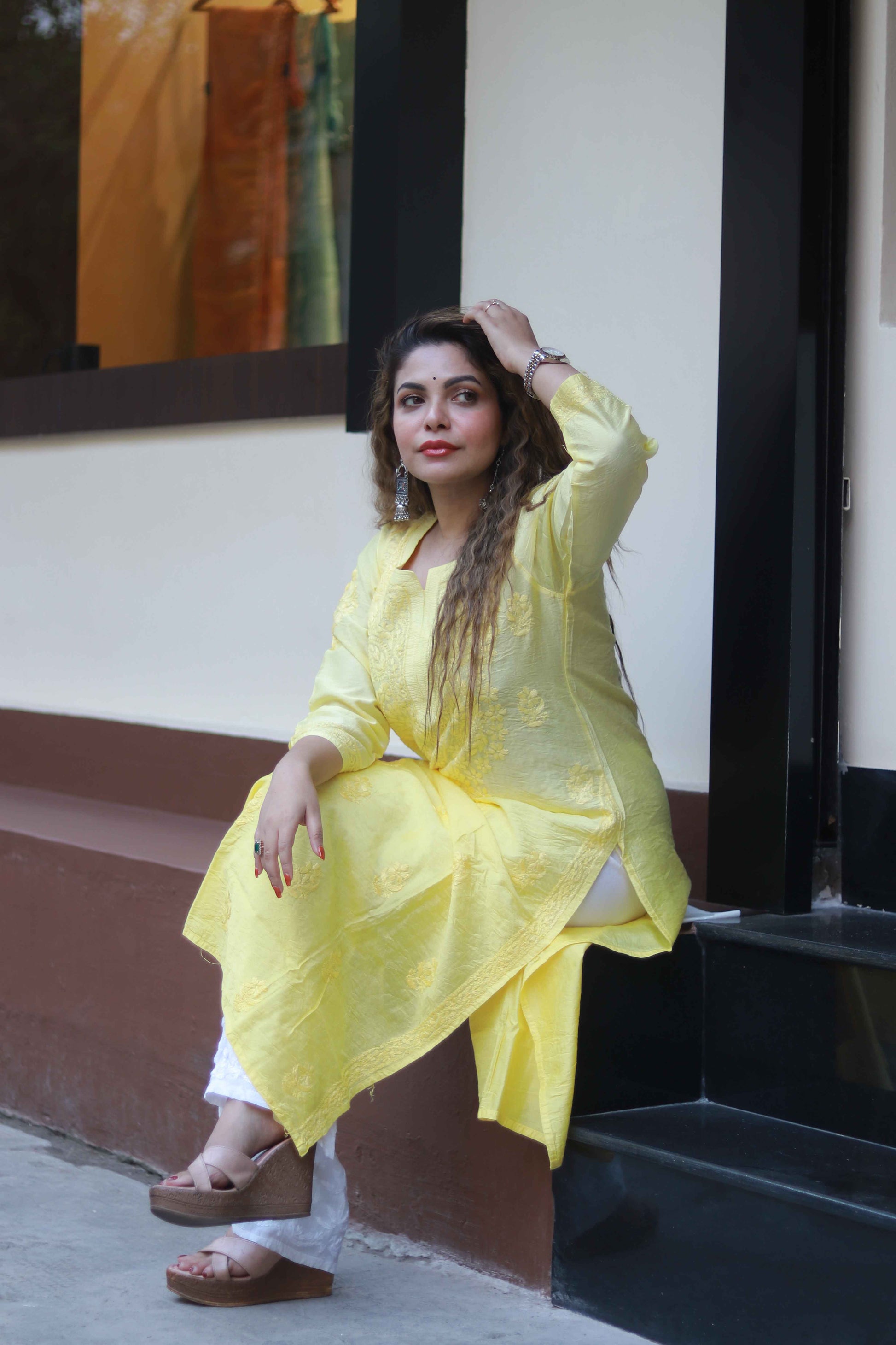 Elevate Your Ethnic Wardrobe With Our Exquisite Chanderi Silk Women's Kurta, A Timeless Piece That Effortlessly Combines Tradition With Contemporary Style. Crafted From The Finest Chanderi Silk, This Kurta Boasts A Luxurious Texture And A Subtle Sheen That Catches The Light Beautifully.